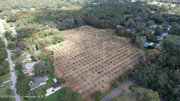 This beautiful high and dry acreage with paved road frontage in the city limits of Brooksville offers stunning hilltop views of the surrounding landscape. The front portion of the property is planted in citrus trees, and the back portion is wooded with a variety of nice hardwoods. This awesome property may not currently be a thriving orange grove, but the potential uses for this 19.4 acres are numerous. The acreage is zoned R1A with the city of Brooksville, and the city confirmed that the acreage can be subdivided into multiple lots, with access to city water and sewer. Parcels this size in the city are few and far between, and this is truly a rare and special opportunity for a new owner.