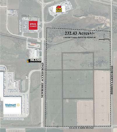 Located on the Southeast corner of North Platte, NE is 232.43 acres with many possibilities for development. Currently, the land to the west of Newberry Access Road has a distribution center and a large truck stop to the North and West of this land. This property is currently zoned Agricultural but could easily be rezoned to Commercial or Light Industrial with infrastructure in place such as electrical access. Much of the work has been done on the water-flow that runs along the West side of the property (Newberry Access Road). Fremont Slough runs West to East along the North side of the land. This property is simply beautiful with plenty of room to build a corporate office, data center, or distribution center. The views are amazing from this land! Legal Description: PT SEC. 14-13-30 AKA PARCEL 6 (PT.) 232.43 A. LINCOLN COUNTY, NEBRASKA Taxes: $4,122.42 Address: North Platte, NE 69101 County: Lincoln