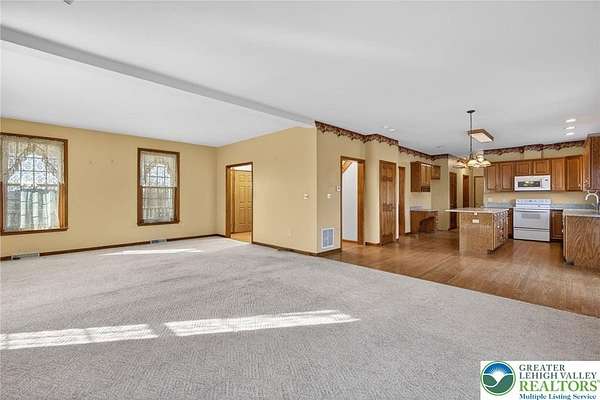 Tucked along a private paved driveway in North Whitehall Township, this home offers scenic views and a serene setting. A welcoming front porch leads into the foyer, with a living room featuring a gas fireplace on one side and a formal dining room on the other. The eat-in kitchen includes granite countertops, a center island, pantry, and command station. A half bath and first-floor laundry room complete the main level. Wood flooring runs throughout the primary living spaces.The second floor offers a primary bedroom with a walk-in closet, laundry chute, and en-suite bath with skylights and a soaking tub. Two additional large bedrooms share a full hallway bath, also with skylights.The finished lower level includes a wet bar, bedroom, full bath, and mudroom, providing additional living space. An attached oversized one-car garage is included.This is a distinctive rental opportunity offering privacy, space, and scenic surroundings. For tenants seeking a rental that includes equestrian facilities, please also reference MLS #770215 for a separate available listing.