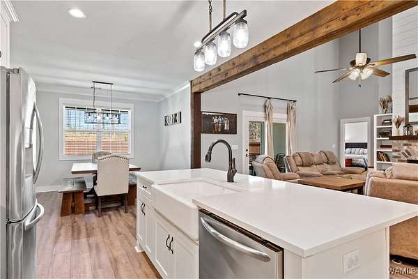- Breakfast Area, Ceiling Fans, Granite Counters, Open Concept, Primary Downstairs, Soaking Tub, Solid Surface Counters