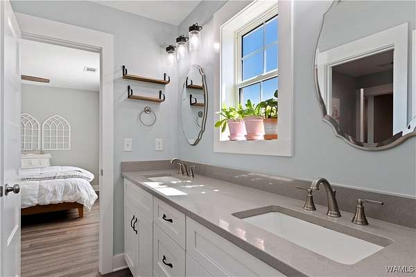 This house plan boasts of impressive design features including the airy modern farmhouse feel sitting on 4.7+/- acres. There is a side-entry garage, sparkling pool, gorgeous extended front porch, and back patio area both with stained wood soffits. Living area offers gas fireplace, shiplap accent, and built-in bookcases. Kitchen includes quartz countertops, subway tile backsplash, breakfast bar, large area for kitchen table, and plenty of entertaining space. The primary bedroom is located on the main level. Highlights include dual vanities, a deep soaker tub, oversize tile shower, and sizable walk-in closet. The second floor of the home includes three additional bedrooms, and jack and jill bathroom. Make sure to view all metal construction 30x40+/- shop with 3 roll up doors, LED lighting and vehicle lift.