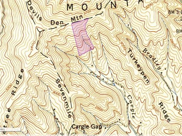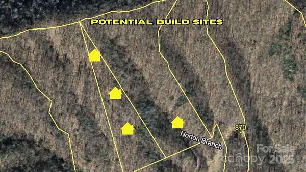 From Interstate 26, exit 11 Mars Hill. Head west through Mars Hill 4.8 miles. Turn right on Petersburg Rd. Go 1.3 miles to the Community Center, veer to the left and continue another 2.6 miles. Turn left on Cargile Branch Rd. Go 1 mile to 930 Cargile Branch Rd. (on the right) and veer to the right onto Norton Branch Rd. When the pavement ends continue until you see the sign then turn right. Drive to the next sign on the left. Suggest doing a turn around there and then park there on the side of the road where there is a holler up into the property. Suggest a walking stick & sturdy shoes. Start the walk going up the holler and then up the mountain to the left to the ridgeline. Only one other property has a tiny dwelling past this point. For GPS purposes put in 809 Norton Branch Rd (neighboring property).