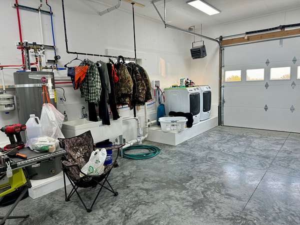 The fully insulated garage is also around 600 square feet. A washer, dryer, water heater and sink are located in the garage.