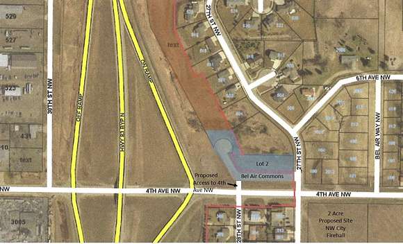 This 1.44 acre C1 zoned commercial lot is just off the US 83 west bypass at the 4th Ave NW exit. Over $220,000 of sewer, water, grading work already complete on this site. BUILD A STRIP MALL OR TWO CONDO BUILDING. Permitted C1 uses Retail businesses, such as general merchandise, groceries, liquor, hardware, and apparel stores; eating and drinking establishments (excluding drive-in and drive-through services and designed to accommodate no more than fifty (50) persons at one time); Business services, such as banks and other financial institutions, and professional offices. Personal services, such as barber and beauty shops, photographic studios, laundromats and dry cleaning establishments, tailors; Repair services, such as radio shops, appliance shops, upholstery shops (not involving furniture manufacturing) and shoe repair shops; Public/semi-public facilities, such as armories, parks, police and fire stations, telephone exchange buildings, and civic center; Professional offices, banks, attorneys, accountants, real estate, and other similar office uses; Pet shops, limited to cats, dogs, fish and other small animals provided all pets are confined within a building and same do not create an odor, noise or nuisance affecting the adjacent occupants; Day care centers must show evidence of application for day care center and all appropriate federal, state, and local regulations must be fulfilled. Complete updated C1 zoning in associated documents. Great location across for the new proposed City Fire Station. All photos, conceptual drawing and proposed placement of building are potential possible and have been through any governmental planning or permitting.