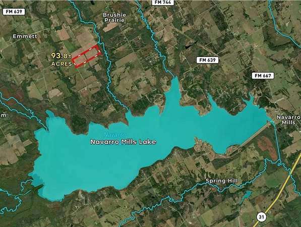 Est $6,338/mo93.871+- acres of land with a mixture of cultivated farm land and treed recreational area. An AG exemption is in place. There is no known floodplain. Electricity is available at the road. Water is serviced by Navarro Mills Water Supply. Excellent investment, family farm and ranch or recreational property located conveniently north of Navarro Mills Lake, just south of FM 774. A new boundary survey is ordered but not yet available for review.