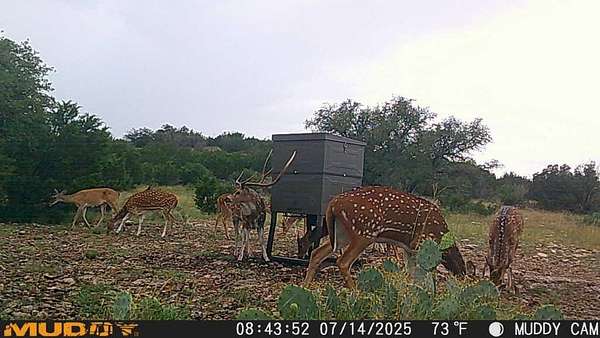 Hunter's Paradise! 25.66 Acres in Axis Draw Ranch - Just 14 Miles West of Rocksprings. This 25.66-acre property is a true hunter's paradise and outdoor retreat, located in the heart of Axis Draw Ranch. The property includes a metal building, ideal for a hunter's retreat, along with 1 blind, 2 feeders, and a water storage tank- all conveying with the sale. A community well provides convenient water access for property owners to transport water to their land. The property is richly covered with a mix of Oaks, Mesquite, Mountain Laurel, and Cedar, creating an ideal habitat for wildlife. Expect to encounter Whitetail Deer, Elk, Fox, Turkey, Dove, and Hogs-making it a dream for hunters and nature lovers alike. From the hilltop blind, enjoy a 275 to 350 yard line of sight with numerous open senderos, perfect for spotting game. With an ag-exemption in place, property taxes are kept low, and there is potential for cattle grazing. The gently rolling terrain is easily accessible via cleared roads, ideal for 2-wheel drive vehicles. The property is low-fenced along the frontage and right side, providing for cattle grazing and frequent wildlife sightings. Property also borders a large ranch.