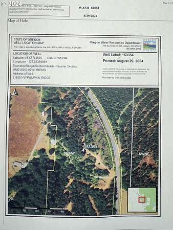 Bring your own builder and build your custom home on this buildable acreage on 5.92 acres on NW Pumpkin Ridge Rd. Beautiful small acreage with a great flat building area amongst the trees for a home site with possible valley & coastal Mtn range views. Buyer to do their due diligence with Washington county on homesite building and zoning. Standard Septic system approved. New well has been drilled with a flow test of 5 gallons per minute. From Shadybrooke Rd travel about 6 miles on NW Pumpkin Ridge Rd, the property is on the left side just past 21650 NW Pumpkin Ridge Rd. At the property past the entrance, please don't block or drive down (walking ok) the driveway which is the western boundary of the property. Property lines on the photos are approximate. Driveway apron has been installed. Call for your showing today.