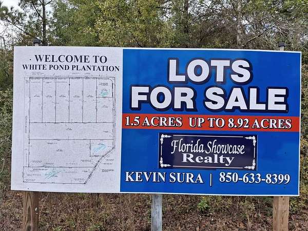 From Marianna, take Hwy 73 South about 18 miles to CR 73 B and turn right. At the end, turn right again and left on White Pond Road. Property starts on the Corner of White Pond and Womble. Some of the lots are left on Womble and right on Tommy Tucker Road. See Documents for Lot locations.