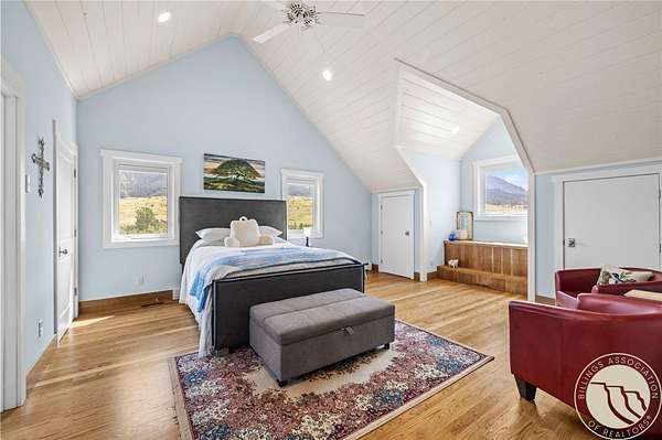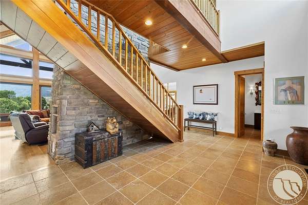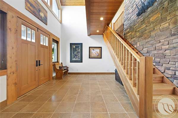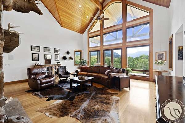 Soaring Eagle offers 24 acres along Montana's blue ribbon Stillwater River in one of the region's most scenic valleys. This legacy home was built with exceptional construction and attention to detail, blending thoughtful design with lasting quality. Soaring windows capture panoramic views, and rich hardwood floors add warmth throughout. The kitchen features custom cabinetry, high-end appliances, a walk-in pantry, and wet bar. The dining area is surrounded by windows, and the great room centers around a dramatic floor-to-ceiling stone fireplace. The setting is alive with wildlife-elk, deer, bear, eagles, and sandhill cranes. With direct river access and four-season recreation, Soaring Eagle offers a rare opportunity to own a private piece of Montana's natural beauty.