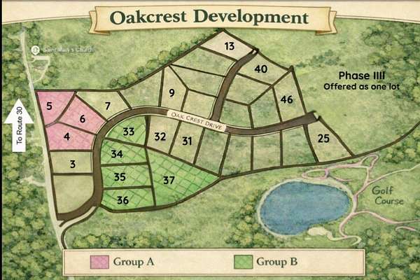 Oakcrest is a planned residential subdivision in Somerset County, Pennsylvania, offering building lots with scenic views of the golf course, open fields, and surrounding mountain landscape. All utilities are available at the paved road, including public water and sewer, with underground electric providing a clean, unobstructed streetscape. Lots are thoughtfully laid out to capture natural views while maintaining privacy and long-term value. Protective deed restrictions are in place.