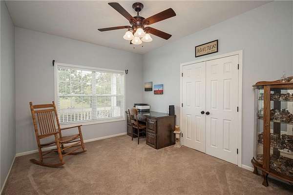 - Ceiling Fan(s), Custom Cabinets, Kitchen Island, Painted Cabinets, Pantry, Walk-In Closet(s)