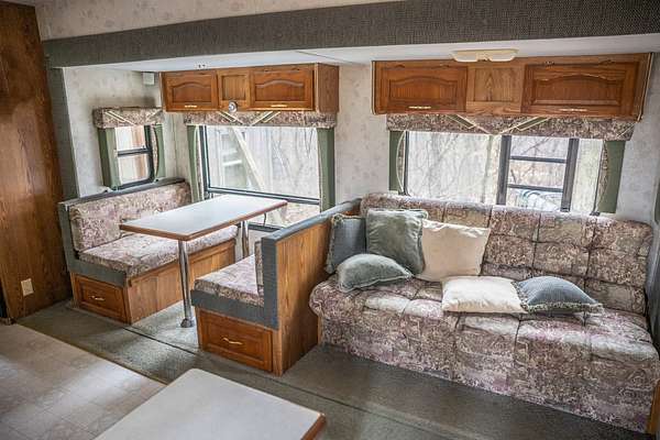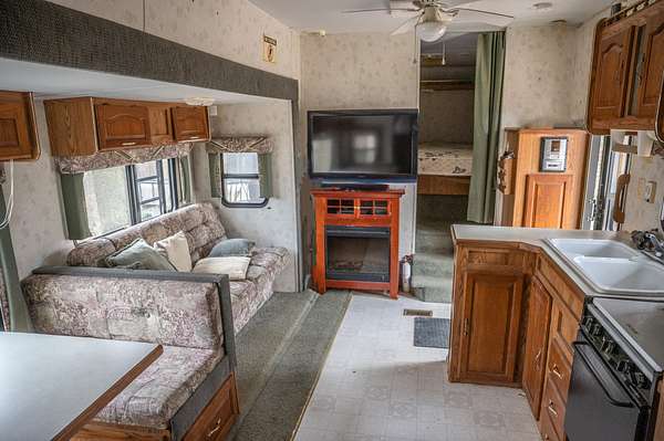 At the center of it all, a camper and equipment shed provide comfortable shelter and secure storage — keeping you and your gear protected from the elements while offering a simple, functional camp setup.