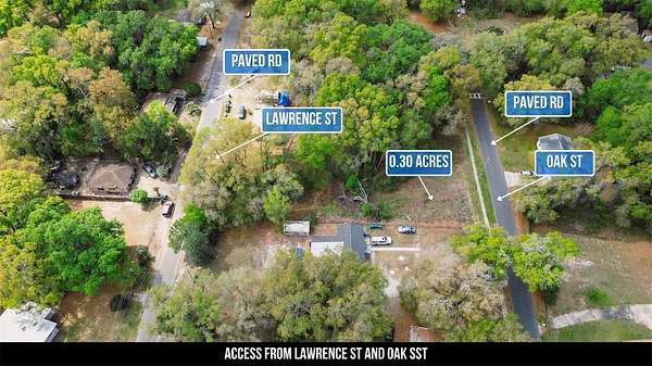 What sets this property apart from the rest? Access and Flexibility. This lot boasts a unique footprint with 50 feet of paved road frontage from both Lawrence Street and Oak Street. In the world of real estate, dual frontage is a major win. This configuration opens the door to a exciting possibility: the potential to divide this 0.30-acre parcel into two separate lots.