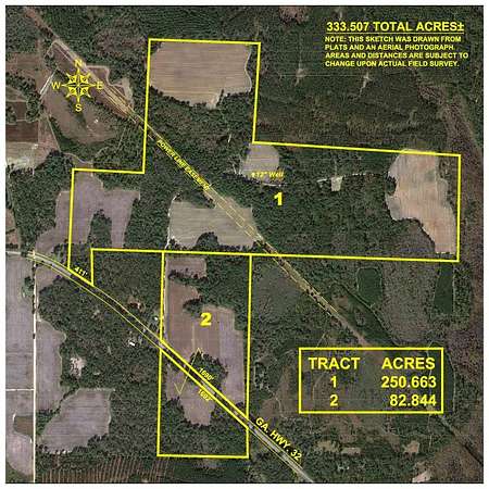 ONLINE REAL ESTATE AUCTION - Price Determined By Competitive Bidding. Price Disclosed is Tax Card Value and is NOT a Listing Price. The Gregory Tract of the Tison Estate consists of 333± acres of premium recreational and agricultural land located in Worth County, Georgia. Offered in two tracts, this diverse property features approximately 125± tillable acres supported by a 12-inch EPD-permitted deep well, with water service provided by travelers and risers. The balance of the property includes natural timber and habitat that create outstanding hunting opportunities, further enhanced by its direct border with Aultman Forest-one of the area's most recognized wildlife corridors. Tract 1 consists of approximately 250± acres, while Tract 2 includes 82.8± acres representing a 50 percent undivided interest. The farmland is currently leased for the 2026 crop year, providing immediate income potential, and hunting rights will convey to the purchaser at closing. Known for premium whitetail deer, turkey, and duck hunting, this property offers a rare combination of scale, income, and recreational appeal. Zoned V5 and conveniently located along GA Highway 32 just minutes from Albany, Sylvester, and I-75, the Gregory Tract will be offered at online real estate auction on Tuesday, May 19, 2026, at 2:00 PM.