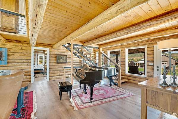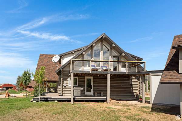 Experience mountain living in this beautifully updated log cabin on 2 acres in Oakley, perfect for horses and outdoor recreation. Blending rustic charm with modern updates, this home offers both comfort and versatility in a peaceful setting. The main cabin features a remodeled kitchen (2021) with upgraded appliances and custom cabinetry, plus a fully remodeled bathrooms (2025) with spa-like finishes. Vaulted ceilings, large windows throughout. Designed for outdoor living, the home boasts four spacious decks ideal for entertaining, relaxing, or enjoying breathtaking mountain views. Adding to the property's appeal is a detached garage with an ADU and with tenants in place, offering immediate rental income. A bonus studio room in the garage provides flexible space for a home office, gym, or creative use. With flat, usable acreage, the property is well-suited for horses, complete with room for pastures or barns. Located just minutes from Park City and within easy reach of Salt Lake City, this retreat combines privacy, natural beauty, and convenience. ADU above garage offers roughly 1250 square feet a kitchen bedroom and office space, with tenants own entrance and covered parking spot. "SELLER OFFERING HOME FULLY FURNISHED PLEASE REACH OUT FOR PRICE"