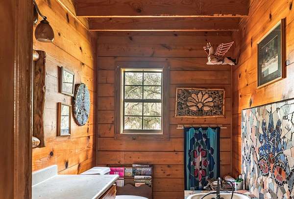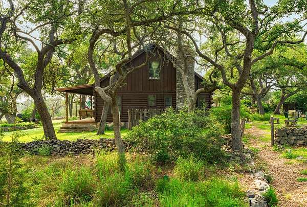 10 Acres, Privacy, Custom Home, Pool, Koi Pond, Chapel, Horse Barn with Stables & Corral, Income-Producing Property. Additional Acreage Available. Light Restrictions. Discover this 10-acre Hill Country retreat just 5 minutes from Wimberley and 10 minutes from San Marcos, offering the perfect balance of seclusion and accessibility with Austin and San Antonio nearby. The hand-built, 2,300 sqft log cabin offers total privacy and features vaulted ceilings, rustic cowboy and Native American-inspired decor, and a gourmet kitchen with mosaic tile backsplash, light granite countertops, custom cabinets, gas range, and stainless steel sink. Enjoy three fireplaces-two stone fireplaces in the dining and living rooms, and a wood-burning stove in the primary bedroom. The primary bath has a sculptural walk-in shower, while the second bath features a soaking tub with mesmerizing mosaic tiles. The expansive veranda leads to a koi pond, stone patio, and an elysian cabana. The property also boasts a hand-built stone chapel, ideal for weddings, concerts, and other events, seating up to 80 guests. Its rustic charm and timeless beauty transport you to another era, reminiscent of the spirit of Austin's past. Outdoor living includes a stand-alone pool, an outdoor kitchen with stone grill and fire pit, and a raised outdoor stage for performances, evoking the spirit of cosmic cowboys like Willie Nelson and Waylon Jennings. Horse amenities include a barn with stables and corral, and a grand stone rabbit house. The property offers easy access to Ranch Road 12 and is close to downtown Wimberley, Hill Country Studios, Jacobs Well, and other attractions. It has served as both a short-term rental and a cherished homestead. This unique Hill Country gem combines luxury, rustic charm, and artistic beauty, offering endless possibilities-whether for a private retreat, income-generating rental, or event venue.