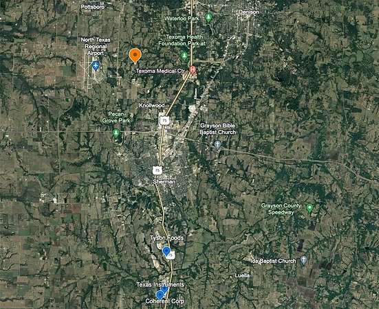 Location is everything—and this site delivers. Just minutes from the massive semiconductor expansions at Texas Instruments and GlobalWafers in nearby Sherman, where billions in investment are reshaping the region into a “Silicon Prairie.” Additional growth includes the 440-acre Heritage Ranch master-planned community only 3 miles away, featuring new homes, retail, trails, and a future regional medical center.