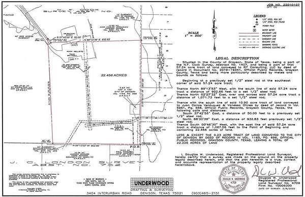 This nearly 23-acre tract is nestled between the established Lakeview Addition and Highview Estates, with access from both neighborhoods—making it ideal for a seamless residential expansion. The owner has secured a will-serve letter from the City of Denison for water service for up to 30 single-family homes, and a 10” water main runs along the property boundary.