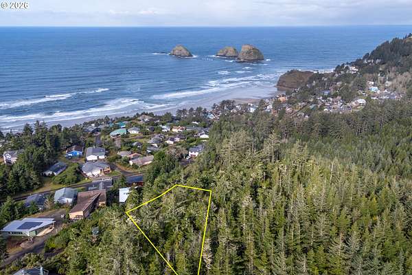 Est $1,700/moPANORAMIC OCEAN VIEW including Three Arch Rocks. Large lot in secluded setting near the end of the road, backs to forest land. Gently sloping, so easy to build. New Middle Housing zone changes allow up to 4plex and/or up to 8 units in a "cottage cluster." Utilities available. Beach trail nearby. No HOA.