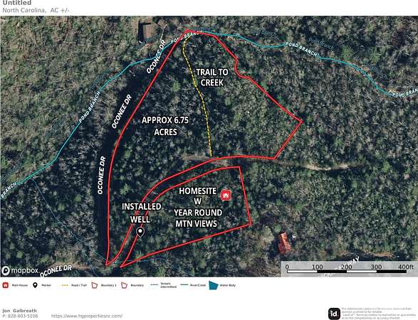 Stunning long range mountain views with the soothing sounds of Pond Branch Creek!! Nearly 7 acres with a level build site that has year round views of the iconic Black Mountains, the highest elevations in the eastern United States. Trim a few more trees and you'll have sweeping mountain views. This property features two water sources, including frontage along Pond Branch Creek and an installed well. With the potential to accommodate up to four homes, it's perfect for a private estate or investment opportunity. Set within the quiet, Oconee Falls gated community, this parcel offers both seclusion and convenience. A rare gem priced to sell, don't miss your chance to build in one of Western North Carolina's most scenic regions. Located just 10 minutes from Linville Falls, the Blue Ridge Parkway, and Linville Falls Winery, 40 minutes to ski resorts, and 50 minutes to Boone.
