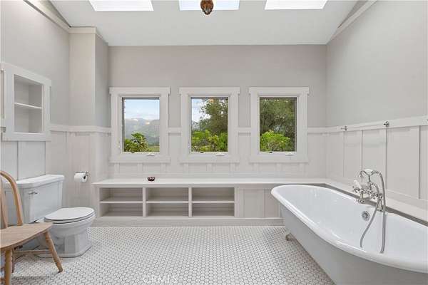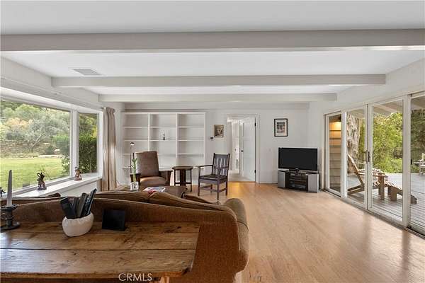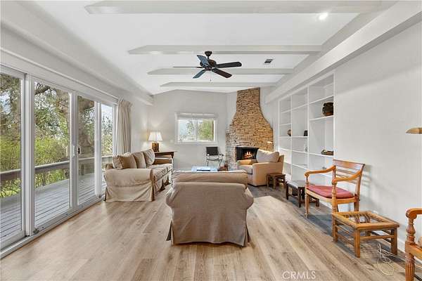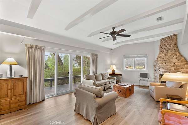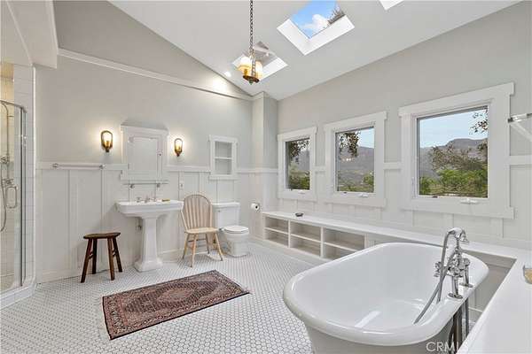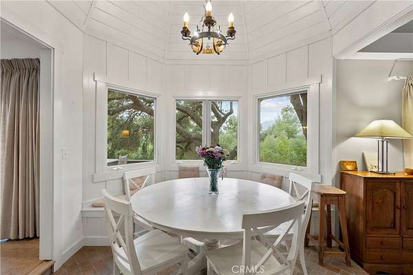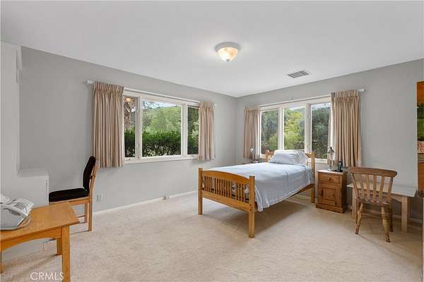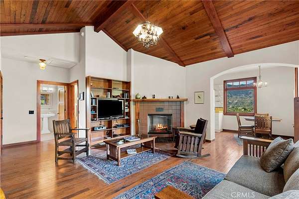 Welcome to your private Ojai retreat! This beautiful property sits on 3 acres of serene land, offering expansive views of the surrounding valley and majestic mountains. The main home, over 3000 sq. ft. features 3 bedrooms and 3 bathrooms, designed to maximize natural light and showcase the stunning scenery. Sit and enjoy viewing the 100 year old oak off the main deck. Your very own private oasis with lush trees and landscaping. Interior boast hardwood floors with newer carpet in hall bedrooms. Fireplaces add the ambiance in the family room and dining room. Dining area has tall conical ceiling. The primary suite has a pot belly stove, walk in closet and wood floors. The primary bath has separate soaking tub and shower all updated. In addition, a 750 sq. ft. guest house built in 2012 provides a private 1-bedroom, 1-bath space--ideal for extended family, guests, rental income, or a private studio. With plenty of room to relax, entertain, and enjoy the Ojai lifestyle, this property combines comfort, functionality, and breathtaking beauty. The guest house has private driveway, covered parking and separate washer/dryer. Think of this as your home away from home with the most beautiful views of Ojai. Close to downtown Ojai with restaurants, shopping and wine tasing.