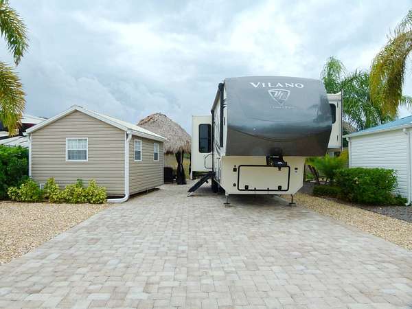 Est $1,652/moSILVER PALMS 5 STAR RESORT - A 90-acre gated community of Silver Palms RV Resort. The clubhouse has daily activities and a full-time activity director. Billiard and card room, library and fitness center. Pickleball courts, dog park, poolside bar and grill. This lot overlooks the nature preserve. The Tiki is less than 3 years old. Fully deeded lot ownership. Lovely, finished Casita with 1/2 bath, AC, washer-dryer, daybed, and kitchen countertop. Tastefully decorated. Call today to own your piece of paradise.