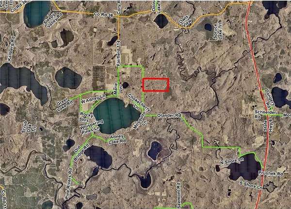 From the intersection of County Road 36 and County Road 37 in Crosslake, take County Road 36, go 4.6 miles, turn right onto County Road 114, go 1 mile, turn left onto Olander Road, go 0.9 miles, and the property will be on your left. The acreage entrance is across from the property addressed 19173.