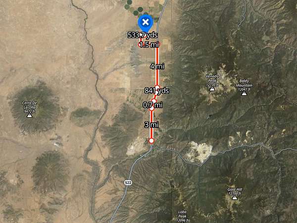 From the intersection of NM 522 and Sunshine Valley Rd, travel West on SUnshine Valley Rd for 1 mi. Turn Right on Ute Valley Rd. Proceed 1 mile to Old Bumper Rd. Turn Right. Proceed approximately 1/8 mile. Last lot on Right. Sign on lot.