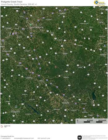 The Padgetts Creek Tract consists of +/- 226 acres of land for sale near Pacolet, SC. Just 20 minutes from downtown Clinton and 40 minutes from Spartanburg, this expansive tract offers a blend of investment potential, recreational opportunities, and scenic beauty.