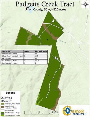 This tract features multiple stands of loblolly pine plantations of various ages, complemented by hardwood drains, including the picturesque Padgetts Creek. This tract is primed for both short-term and long-term gains, making it a robust addition to any portfolio.
