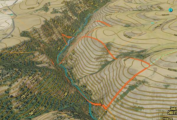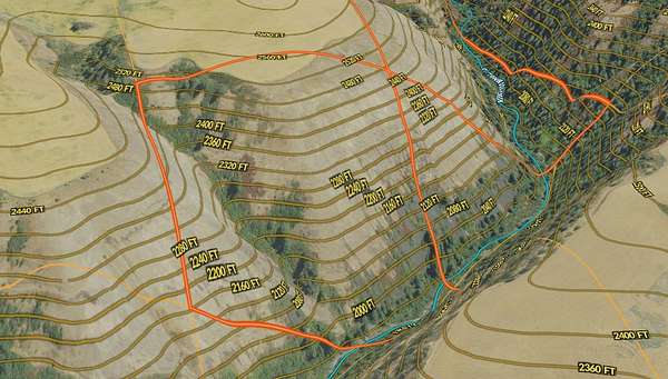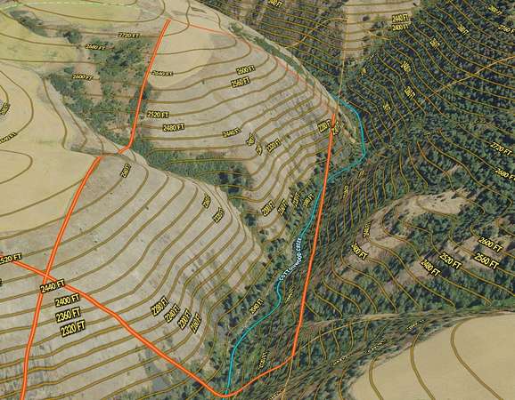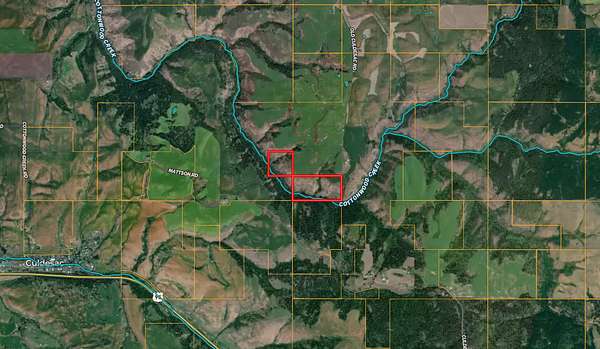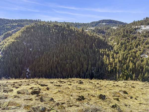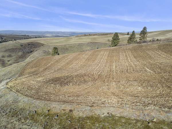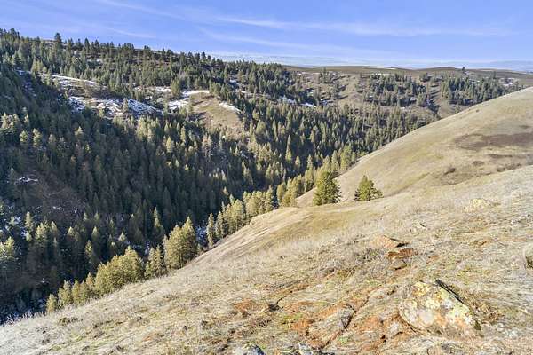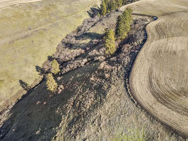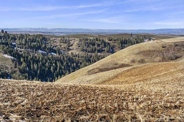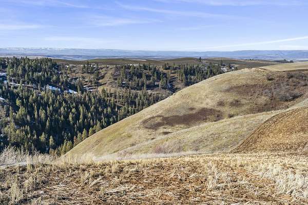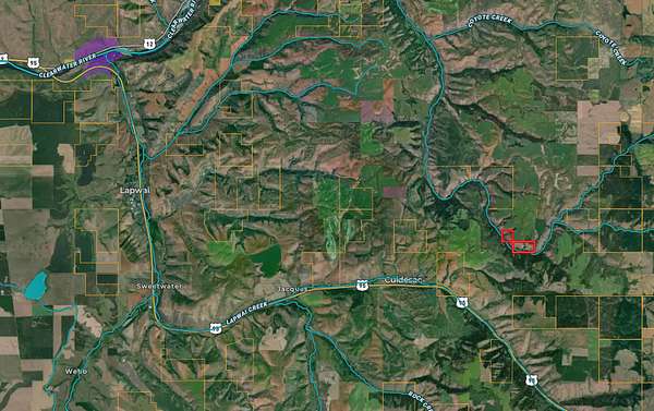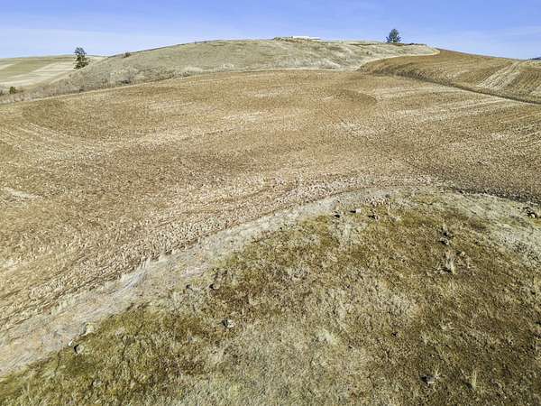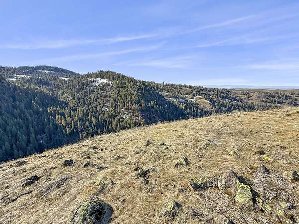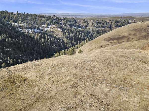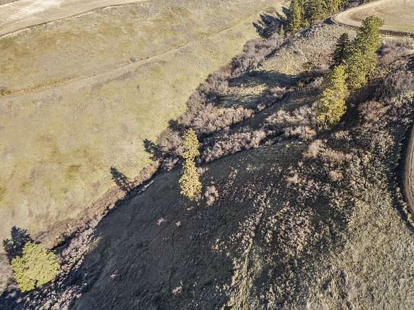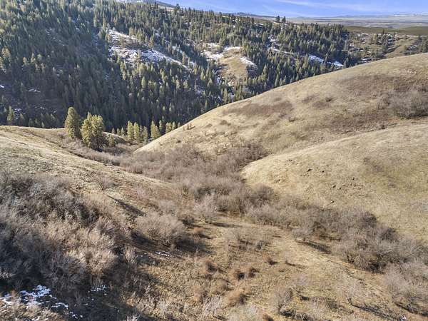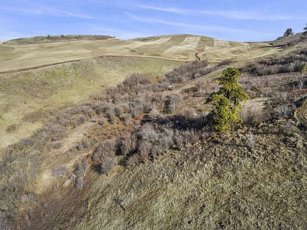 This 120-acre property in Culdesac, Idaho, features a sloped landscape that descends to a year-round creek. Scattered trees provide natural cover, while open areas offer expansive views of the surrounding terrain. The land supports abundant big game, including deer, elk, and bear, making it a prime location for hunters.