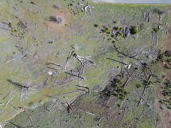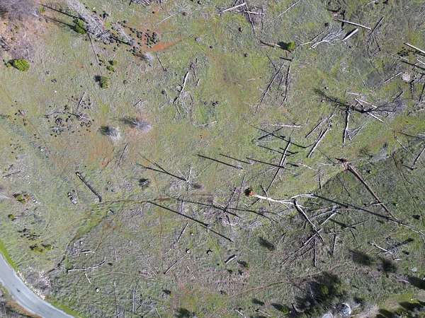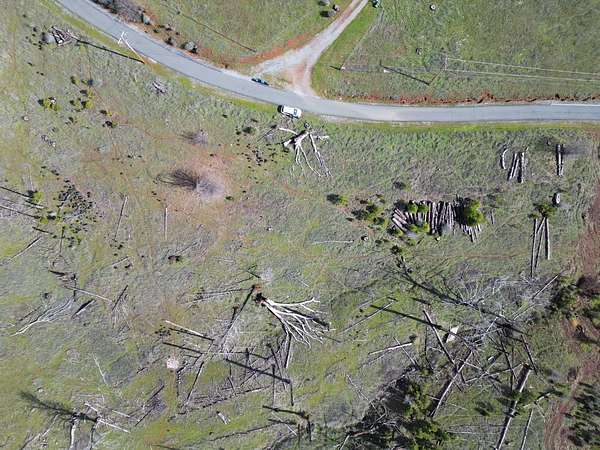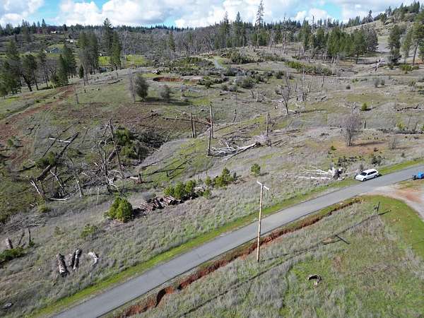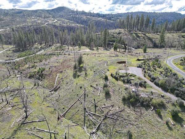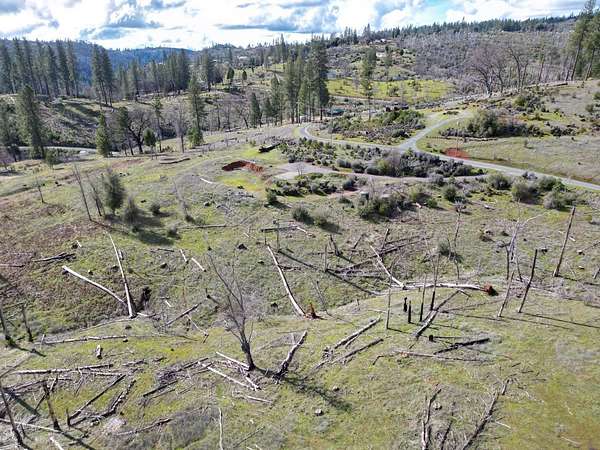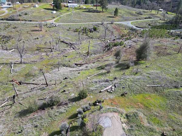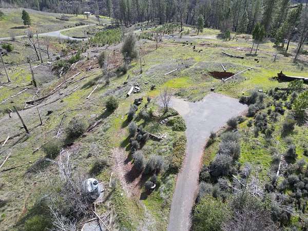 Stunning parcel with panoramic views of forests, cliffs, and rolling hills. An active heard of deer frolic in the grasses. Lots of firewood, including oak, available on lot, and numerous Ponderosa pines and a few incense cedars making a comeback on the hill below. The center of the property has a seasonal creek that in good rain years flows for several months. An incredible quality asphalt driveway in great condition goes to prior home site, while passing 2 leveled pads for large water tanks. Cellphone signal with at least 2 major carriers is strong here. Electricity comes from a nearby pole, septic and well on site, buyer to investigate condition. Nearest groceries and hardware store 15 minutes away in Mountain Ranch. As-Is Sale. Make this land into your dream home!