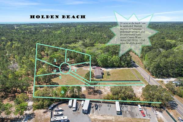 Set just minutes from the coast, this exceptional 3.25-acre parcel offers a rare blend of space, flexibility, and coastal convenience. Located within five miles of the beach, the property provides an ideal setting for a private estate, family compound, or investment opportunity. With subdivision potential already in place, this tract opens the door to multiple homesites, making it attractive for developers or buyers seeking to build more than one residence. Access to county water adds to the ease of development, while a preliminary soil evaluation confirms multiple suitable locations for conventional septic systems--streamlining the path toward construction. Whether you envision a serene coastal retreat or a thoughtfully planned residential project, this property combines location, usability, and future potential in one compelling offering.