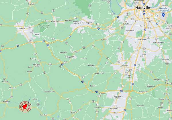 From Nashville: I-65 S. to I-840 W, take exit 7 onto SR-100 toward Centerville, 14 mi, Turn left onto SR-230, 5.9 mi. Turn right onto Tottys Bend Rd, 5.2 mi, take a slight right turn onto Tottys Bend Rd, 1.1 mi.Turn left onto Old Highway 50, 0.