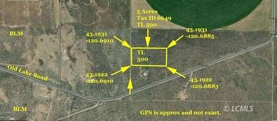 Est $145/mo5 Acres situated perfectly in Silver Lake close to Pettus Lake and just minutes to either Christmas Valley or Silver Lake for supplies. Excellent road access and power is right next door. The costs to bring power to this parcel would be minimal. Vast mountain and valley views. From this parcel to pavement is just seconds away, no muddy road access issues. Tens of thousands of acres of BLM Public lands just across Old Lake Road to go play on. Great location and a great price.GPS and directions are on the maps and photos in the MLS. No owner carry.