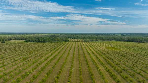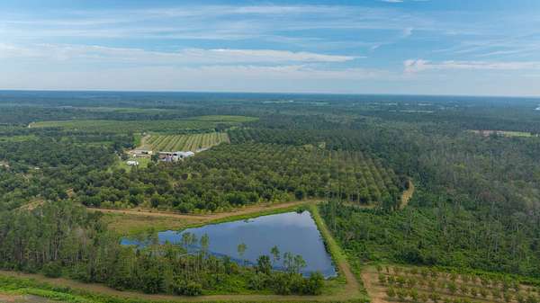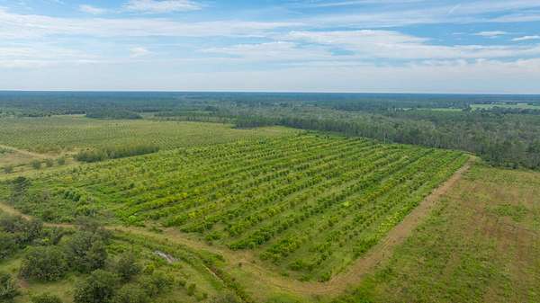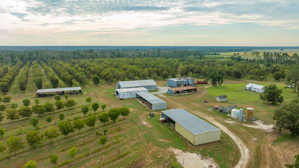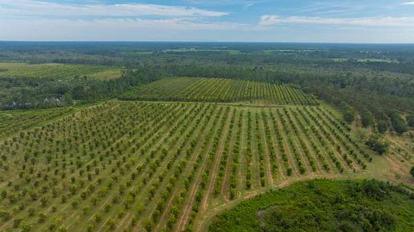 The Patten Orchard, a true large-scale irrigated pecan investment totaling 1,181+- acres of income-producing farmland, improvements, and natural features. This orchard includes 606+- acres of planted pecans featuring a premier lineup of high-demand varieties such as Pawnee, Creek, Cape Fear, Desirable, Oconee, Avalon, Gloria, Huffman, Moreland, Byrd, Sumner, Kiowa, and Zimmer. Supported by four EPD-permitted electric deep wells (two 10" and two 8"), the orchard is divided into eight irrigation zones with emitter and Micro Jet irrigation, paired with top-tier drainage infrastructure engineered for precise water management. This expansive tract also includes merchantable timber, multiple ponds, and miles of Big Creek frontage, offering recreational value to match its agricultural performance. Improvements include a 1,248+- SF residence (currently leased month-to-month), a maintenance shop, chemical storage, multiple enclosed storage barns, and open equipment storage barns. Located on Teeterville Road, Patten Orchard is the ultimate opportunity for pecan growers, institutional investors, and land buyers seeking a legacy-grade operation with income, scale, and natural beauty.