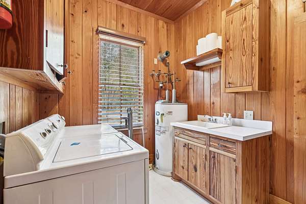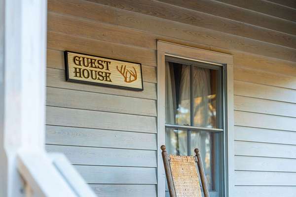 A 570 sq ft guest cabin provides additional sleeping quarters and a bathroom.