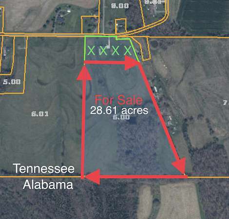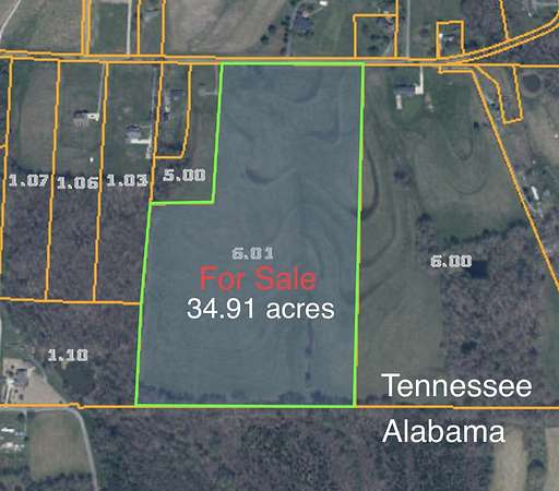 Seize the opportunity to own and develop 63.52 acres of rolling land. This expansive property is divided into 2 parcels, each with unique characteristics and development potential and is located on the AL/TN line. Approx. 5 acres are covered in mature trees, providing a natural oasis. The remaining acreage features rolling open fields, ideal for residential or commercial development, making it an attractive investment for developers and investors alike. The property is conveniently located with water, electric, and natural gas services available at the road, simplifying the development process. Call today to explore this remarkable property.