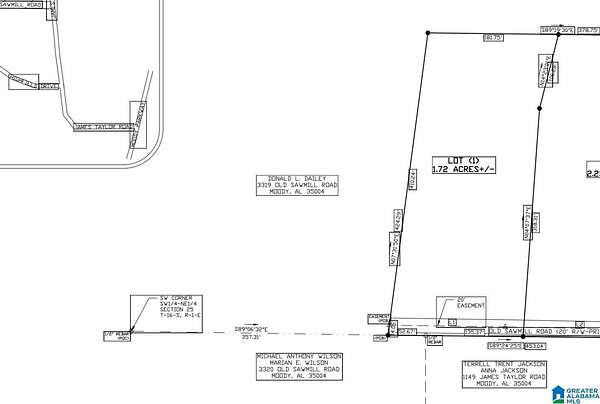 Est $599/moTract 1: Build the Home of your Dreams in Highly Desirable area of Moody Alabama. The 1.72 Acres on Old Sawmill Road. The Land would be great for anyone needing a Basement Home or Crawl Space. This could be great for a Main Level Parking Garage and Side Entry Basement Garage. Property is Wooded and Requiring Clearing to Build. Property has over 187 Ft on Old Sawmill Road. Site Built Home Only and Conform to City of Moody Building Restrictions. Selling will be subject to City Approval Splitting the Property.