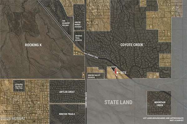 Old Spanish Trail South. Past Camino Loma Alta. To the signs on the right or south side Old Spanish Trail. The property is across the street from the entrance to Coyote Creek subdivision