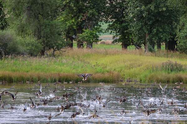 Perhaps the most unique aspect of the ranch is the lush, spring-laden bottomland along the Jefferson River. Here, springs, wetland complexes, and remnant river sloughs intertwine among hundred-year-old cottonwoods. The wildlife is prolific. A wide variety of waterfowl, including ducks (mallards, widgeon, blue-winged teal, cinnamon teal), Canada geese, and tundra swans, as well as geese, turkey, pheasant, eagles, sandhill cranes, and songbirds, are perpetually present. Big game, including whitetail deer, moose, and occasionally elk also call the ranch home.