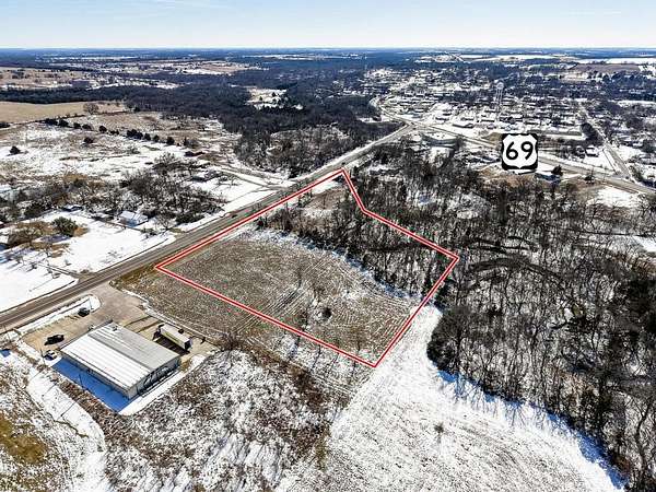Est $3,429/mo5.06-acre C-1 zoned commercial lot in Bells, TX, located just south of Dollar General at 810 Ole Ambrose Rd. Approx. 747 ft of road frontage with easy access to Hwy 69 & Hwy 82. Within city limits with water meter, fire hydrant, and city sewer connections in place. Partially treed with creek on property. Excellent visibility and strong development potential.