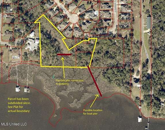 Enjoy beautiful sunsets and evening boat rides on Lot 4 of Frazier Bay Subdivision contains 3.57 Acres on Back Bay in Biloxi. High elevation and can bring in additional dirt as well for additional elevation. Lot is at the end of Oleander road. Access will be along alley. Owner has topography survey of land. Total of 3.57 acres. Over 1 acre of dry land where main house would be built. Then there is a small bayou (also owned) and nearly another acre of land on the other side of the bayou that could be accessed by building a pier. The land on the other side of the bayou could be a great spot for a mother-in-law quarters, pool house, etc. Note that parcel number has been subdivided but not updated online. Please ask for full legal description and subdivision plat.