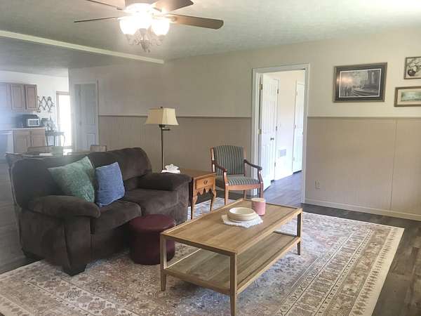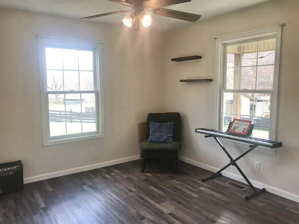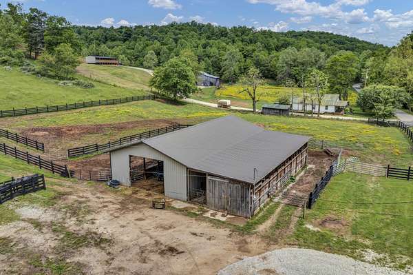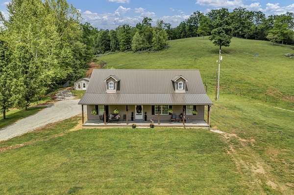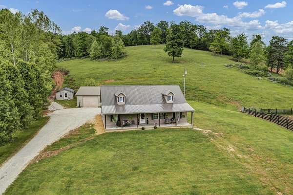 Experience the perfect blend of modern comfort and country living on this beautiful 4.45 acre hobby farm featuring a charming 1 1/2 story farmhouse, multi stall barn, fenced paddocks, and multiple outbuildings. This property is ideal for a mini farm, homestead, or peaceful rural retreat. Step inside the inviting open concept main level, where the kitchen with center island, living room, and dining area flow seamlessly together-an ideal layout for everyday living and family gatherings. The main level primary suite includes a double closet and private ensuite bath for added comfort. The main floor also offers two spacious guest bedrooms and a large laundry room. Upstairs, you'll find an additional guest room plus a generous bonus room, perfect for a home office, hobby space, or playroom. Relax on the covered front and back porches, each offering peaceful views of your acreage. The impressive multi stall barn features 200 amp electric service, ample room for animals and equipment, and two water spigots for convenience. Surrounding the barn and paddocks is attractive blackboard fencing, and an automatic waterer is located at the upper boundary of the property. The farmhouse is well equipped for future expansion with two 200 amp electric panels, offering excellent capacity for additional improvements, workshops, or farm equipment needs. Additional exterior features include a detached garage and storage shed, providing plenty of space for tools, vehicles, and farm essentials. Recent upgrades include a new roof, luxury vinyl flooring, fresh interior paint, and geothermal central heating and cooling, giving the home modern efficiency and style. If you're searching for a move in ready farm property with acreage, updated systems, and exceptional outdoor amenities, this picturesque retreat delivers the perfect balance of rural charm and contemporary convenience. Enjoy the lifestyle you've been dreaming of on this exceptional hobby farm.