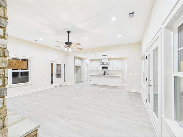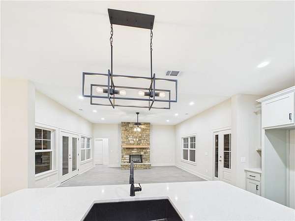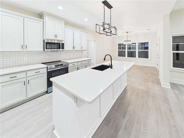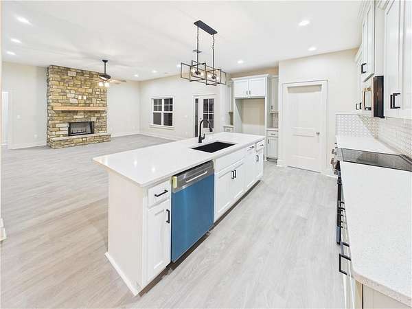 Take a look at this thoughtfully designed home that blends modern finishes with timeless comfort, set on a 2.48 acre homesite in Lee County. Step inside to an inviting open-concept floor plan featuring a generous greatroom anchored by a stunning rock fireplace with a cedar mantel, creating a warm focal point perfect for gatherings or quiet evenings at home. Luxury LVP flooring runs throughout the main living areas, offering both durability and style, while the bathrooms are finished in elegant tile. The heart of the home is the impressive kitchen, built for entertaining and everyday living alike. You'll love the oversized island, abundant cabinetry, and a huge walk-in pantry that provides exceptional storage. Quartz countertops shine throughout the home, complemented by an upgraded appliance package that adds both function and flair. Designed with privacy in mind, the split bedroom plan places the primary suite apart from the secondary bedrooms. With 3 bedrooms and 2 1/2 baths, the layout balances space and comfort for family and guests alike. A large laundry room adds convenience and additional storage options. Outside, the home continues to impress. The massive side-entry garage enhances curb appeal while providing ample parking and workspace. Enjoy outdoor living year-round on the large covered back porch featuring its own outdoor fireplace - ideal for entertaining or relaxing under the stars. Need extra space? The partially finished room above the garage offers incredible flexibility, perfect for a future home office, media room or work out space. Roughed for a future bathroom as well. This beautiful new construction home delivers quality, upscale finishes, and a functional layout designed for today's lifestyle all in one exceptional package.