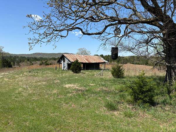 156+- acre OFF GRID Recreational property. The House has a cistern on the back porch. Electricity is cost prohibitive solar panel installation would be the best option. Cell service is good usinng Verizon. This is a hunting property with access to several hundred acres of national forest on 3 sides. Boat Ramp on the White river is 5 miles away. Deer, Turkey, Bear, Hogs, and Quail all have healthy populations. A steep drainage wraps around the property that extends into the national forest allowing for additional hunting acres that offer mature hardwood and Pine hunting opportunities. The owner has managed the property to provide prime bedding areas in the central part of the land along with several food plots that attract animals from the surrounding area. This tract is located at the end of Flannery Lane and is remote, quite, offering vista views and excellent hiking/hunting opportunities on the trails the owner has maintained and improved on. A seasonal creek is located on the property and several year round springs offer excellent year round water stations for wildlife and the owner has placed the food plots next to these springs. This tract offers relatively flat areas to hunt compared to surrounding terrain and if you are into long range target or shooting opportunities you will be interested in this tract. If you add a 20 foot tall Blind you will have several hundred yard visibility options.