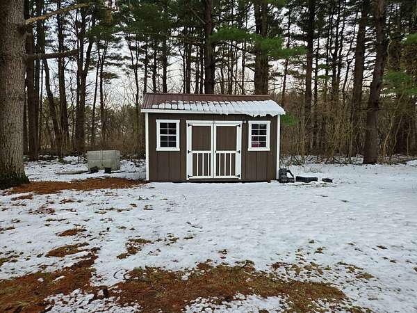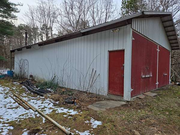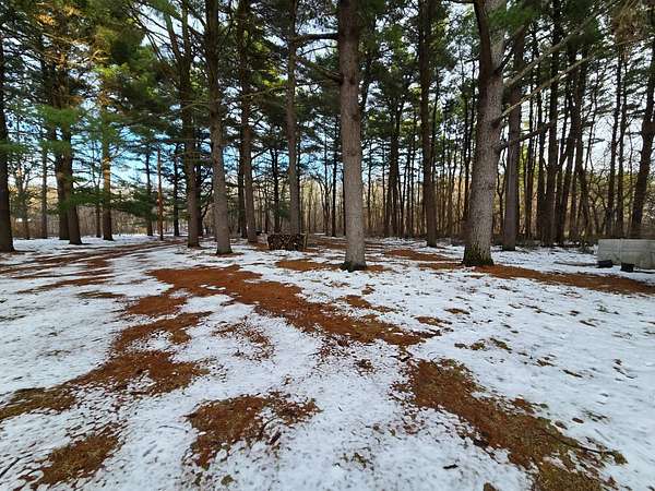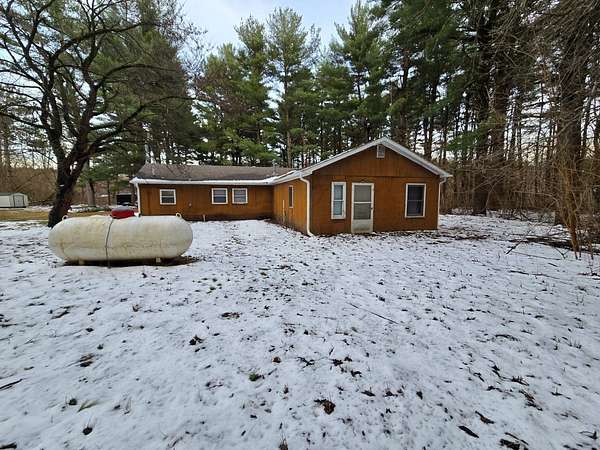 More pics coming soon!! Surrounded by pine trees on a 6 acre parcel sits this 3 bedroom, 1.5 bath ranch home with large outbuilding with concrete floor plus 3 additional sheds! Enjoy convenient all one level living while being amongst nature and wildlife where the seller has seen many deer, turkeys, fox, and more! This home has been well cared for and had many updates including new toilets, a new vanity in the half bath, new flooring, and a brand new sand point well! The full bathroom offers a good sized soaking tub to relax! The furnace has been regularly serviced, and you can cut down on your heat bill with the use of the woodburning stove, complete with new pipe! Two window units will convey with the home. The roof is believed to be approx 10-12 yrs old. The septic was pumped in December. House is being sold as is. Propane tank owned by Blick & Blick.Fiber internet available!!