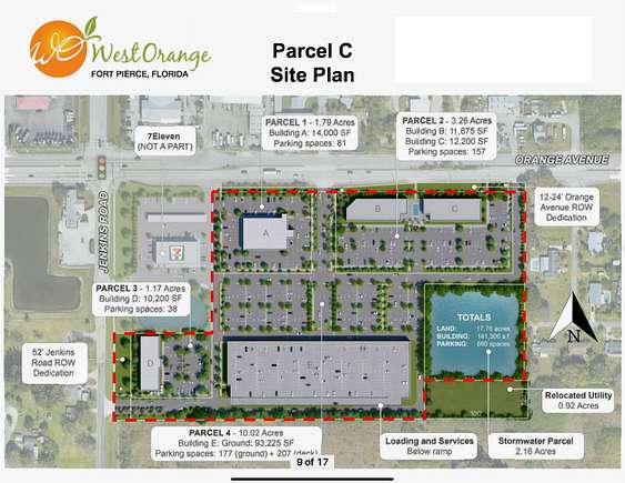 100% LEASED!! 17.09-acre industrial zoned property boasting prime development potential. Situated just 3/4 of a mile east of I-95 on Orange Avenue, the property enjoys convenient access to both Orange Avenue and Jenkins Road. Its strategic location makes it an ideal spot for warehousing, outside storage, or a combination of industrial ventures. With its proximity to major transportation routes and its ample acreage, Orange Crossings presents an attractive opportunity for industrial development in St. Lucie County.For a quick sale and to offset carrying costs during the entitlement process, you could explore two potential sources of income from the Orange Crossings property: