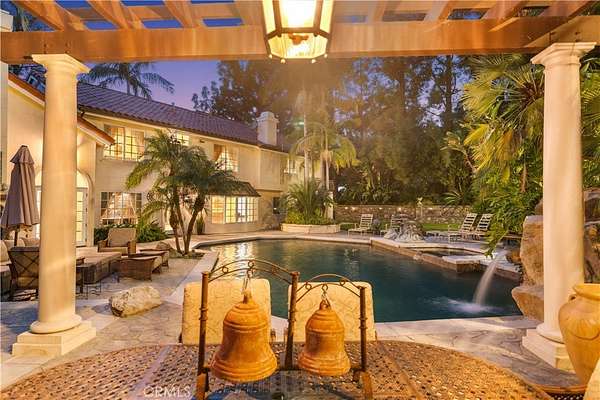 1161 N Coyote Ln in Orange, CA 92869 is an impressive and private custom estate set on approximately 1.65 acres of land in the desirable Orange Park Acres area, featuring a sprawling 5,740 sq ft residence with 4 bedrooms and 4 bathrooms, a 4-car attached garage, and luxurious amenities that include a private heated pool and spa, tennis court, and separate barn, all approached via a long gated driveway and nestled at the end of a landscaped cul-de-sac; the home combines elegant interior details such as high ceilings, crown molding, an open floor plan with cathedral ceilings and granite counters, and offers panoramic views of canyon, hills, and city lights, making it a rare and highly sought-after property in central Orange County.
