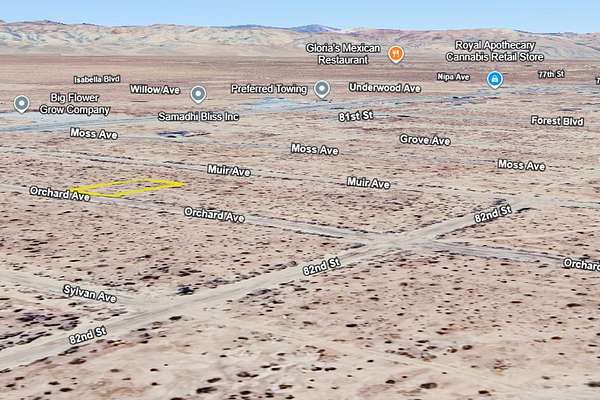 The lot is positioned just a short drive from California City Boulevard, making travel around town convenient. Stores, restaurants like Gloria's Mexican Restaurant and Primo Burgers, and essential services are all within reach. Opportunities in this part of California City are becoming harder to find, so act while it's still available!
